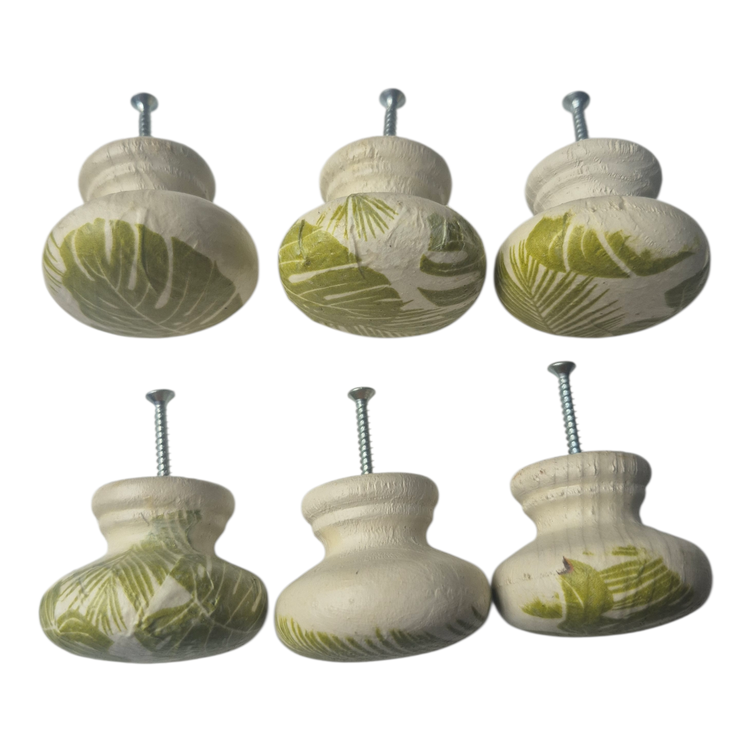 These painted wooden drawer knobs exude a an exotic charm. Painted with Fusion Mineral Paint and decoupaged with tropical leaves, these knobs are perfect for a spa inspired bedroom! Each knob is unique.
